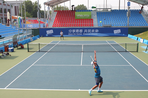 近日,2014年国际网联青少年U18巡回赛南京站比赛在我院中国网球学院场地举行,来自中国、中国香港、中国台北、印度尼西亚、美国、俄罗斯等多个国家和地区的青少年选手参加比赛。这是中国网球学院在青奥会之前承办的最后一系列国际A类赛事,竞赛、安保、餐饮等流程按照青奥标准,也是对青奥会比赛的一次实战模拟。