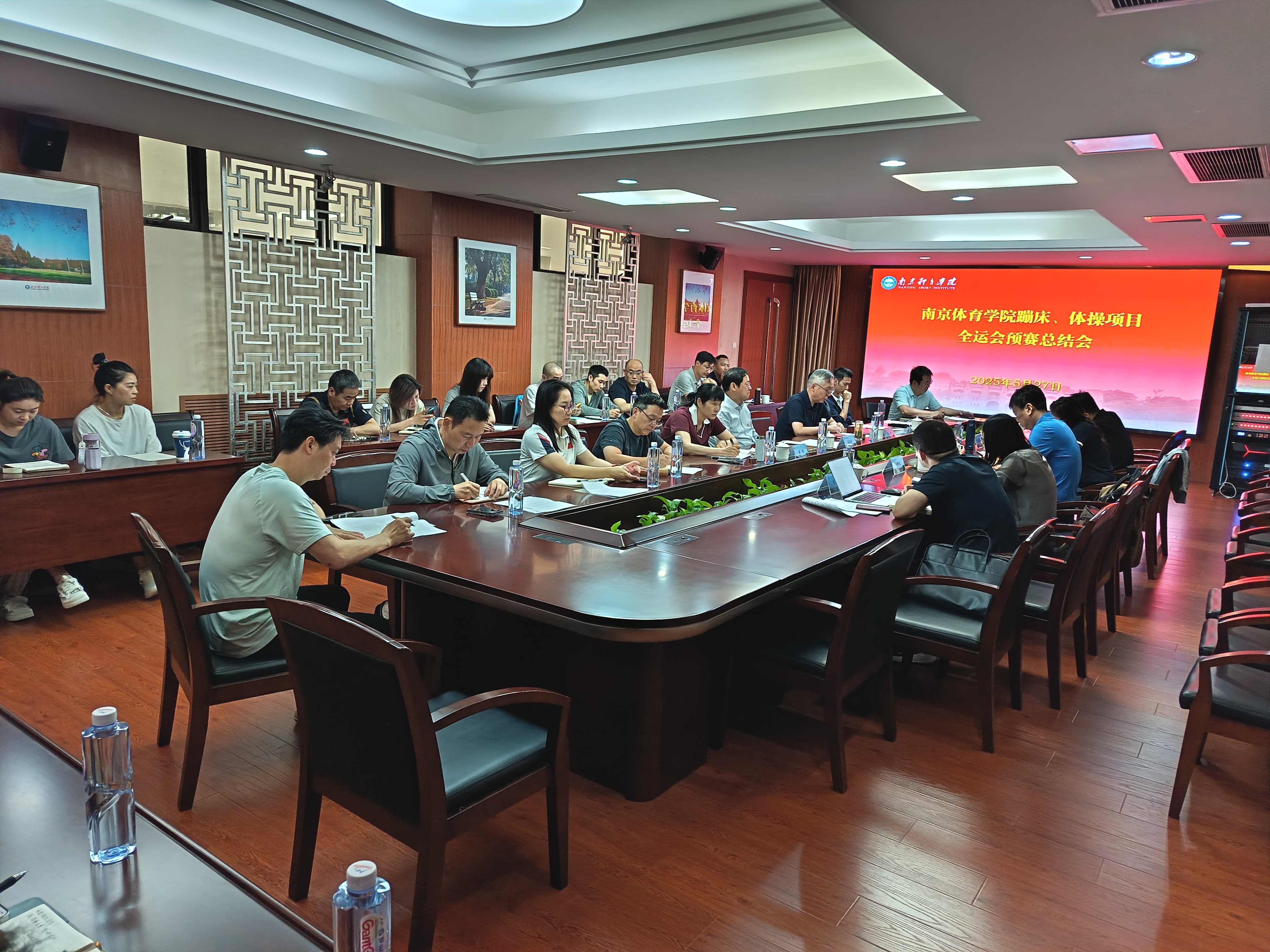 5月27日上午,体操学院在办公楼301会议室召开蹦床体操项目全运会预赛总结会。省体育局副局长刘彤、省体育局二级巡视员、竞技体育处处长许秋红一行来校出席会议。missav校长吴兵成、副校长刘健、体操学院院长梁琴、体操队、蹦床队领队以及参加全运会蹦床、体操项目预赛的全体教练员、科医保障人员、训练处有关负责同志参加了会议。