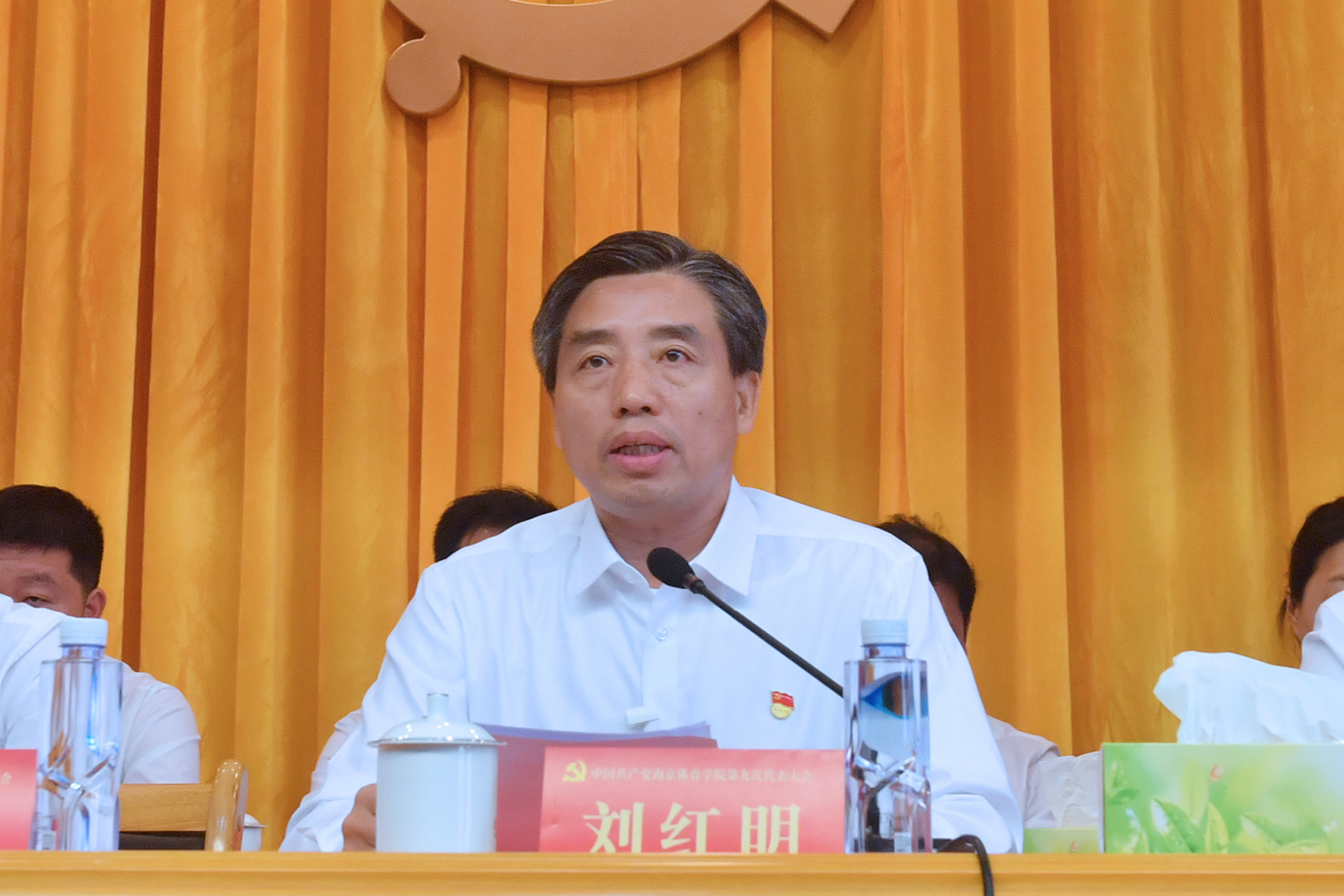 刘红明指出,大会结束后,接下来的任务就是凝心聚力抓落实,不断把学校各项事业推向前进。我们要更加紧密地团结在以习近平同志为核心的党中央周围,坚持以习近平新时代中国特色社会主义思想为指导,在省委省政府的正确领导下,在省委教育工委、省体育局和省教育厅的直接领导下,埋头苦干、勇毅前行,在建设“特色鲜明、走在前列的高水平体育大学”的新征程上谱写新的华章。我们必须坚持团结一心、凝聚发展合力,把学习贯彻学校第九次党代会精神作为当前和今后一个时期的重要任务,迅速掀起学习宣传贯彻热潮,把大会精神系统、全面、准确地传达到广大党员干部和师生员工中去,把大家的思想和行动统一到大会各项决策部署上来,把大家的智慧和力量凝聚到各项目标任务的落实之中。我们必须坚持真抓实干、务求实效,以学习贯彻党代会精神为契机,进一步提高把握新发展阶段、贯彻新发展理念、融入新发展格局的能力和水平,激发干事创业的凝聚力、善作善成的执行力、克难攻坚的战斗力,把大会确定的各项重点任务分解为责任清单,把“规划图”“任务书”变成“施工图”“时间表”,强力推动各项工作落到实处、见到实效。