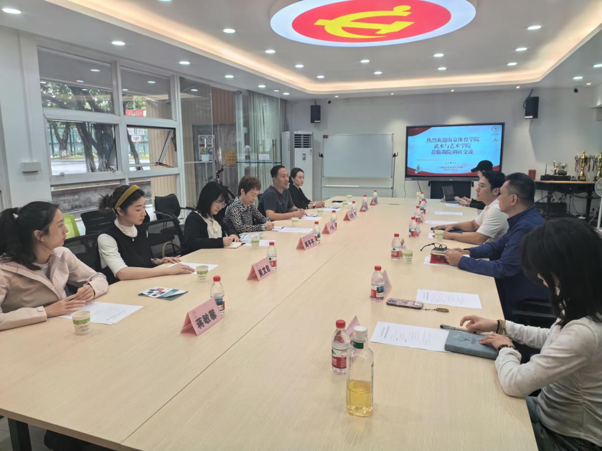 为擘画学院十五五发展蓝图,持续深化艺术类专业教育教学改革,探索新时代高素质体育艺术人才培养新路径,11月11日,武术与艺术学院党总支书记叶瑛率体操系、舞蹈系专业教师一行7人赴广州体育学院体育艺术学院、星海音乐学院舞蹈学院进行专题调研,围绕艺术类专业建设、学科发展、教学资源配置及学生管理等方面进行了深入交流。团队一行受到星海音乐学院舞蹈学院院长胡骁、广州体育学院体育艺术学院党委副书记黄海良、副院长宋波等热情接待,两所学院相关系部主任、教授等参加座谈。
