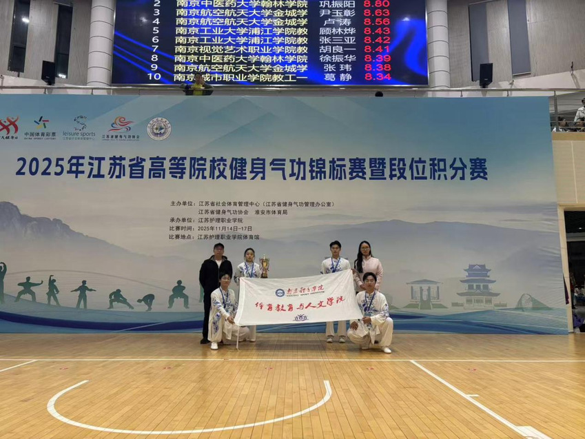 11月14日至17日,“2025年江苏省高等院校健身气功锦标赛暨段位积分赛”在淮安江苏护理职业学院体育馆圆满落幕。作为江苏省连续第12年举办的高校健身气功品牌赛事,本次比赛吸引了全省32所高校的35支代表队、250余名师生同台竞技。首次组队参赛的体育教育与人文学院代表队,凭借扎实功底与出色表现斩获集体项目二等奖 1 项,个人项目一等奖 1 项、二等奖 2 项、三等奖 1 项,实现首次参赛即丰收的亮眼成绩,在强手如林的赛场彰显了missav学子传承中华优秀传统体育文化的青春力量。