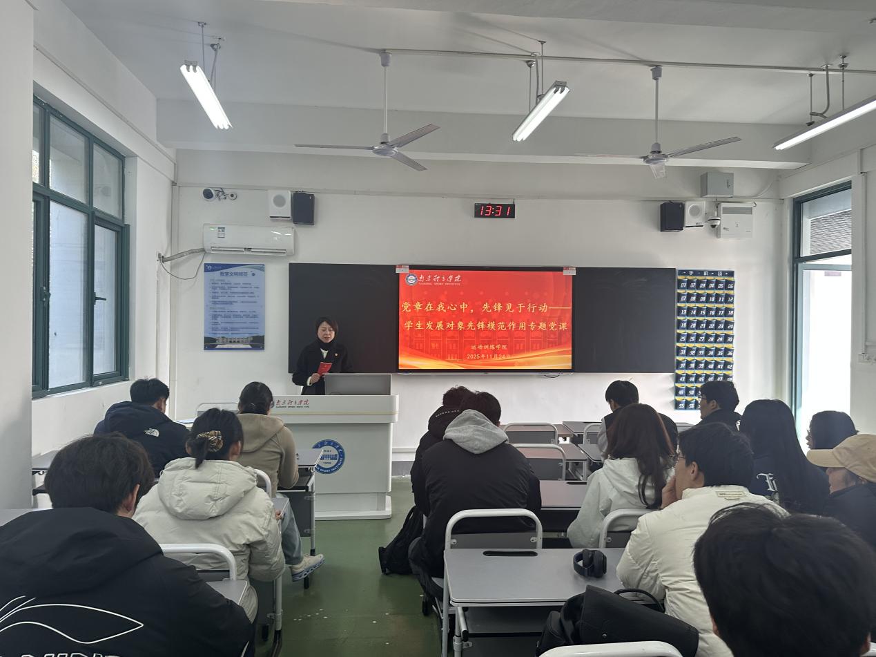 为深入学习贯彻党章精神,强化学生发展对象的责任意识与先锋模范作用,引导学生发展对象将理论学习与实践行动紧密结合,11月24日,学院党总支书记葛见珠为学生发展对象讲授专题党课。全体学生发展对象参加学习。本次党课以“党章在我心中,先锋见于行动”为主题,旨在引导发展对象将对党章的思想认同转化为实际行动,明确先锋模范的职责使命,为成为合格共产党员筑牢思想根基与实践基础。