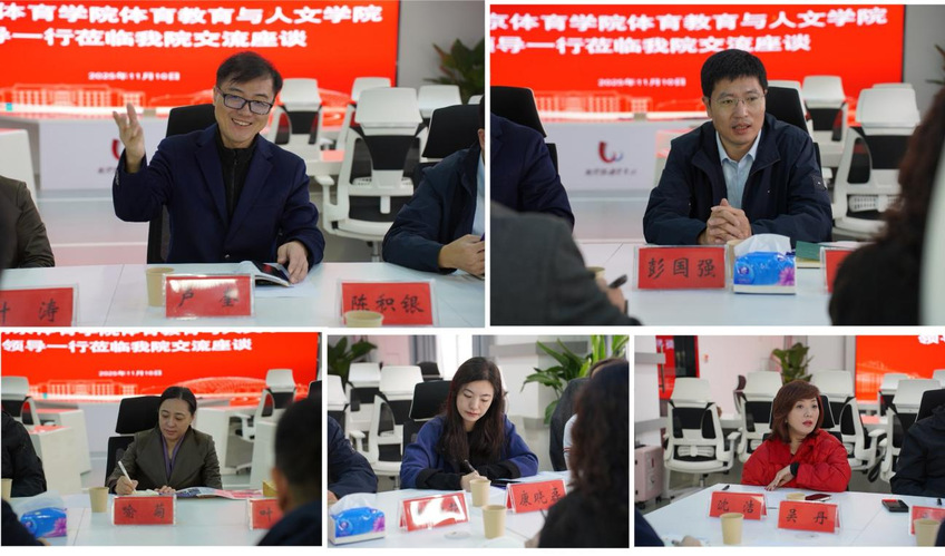 交流过程中,学院调研组就体育文化的深度挖掘、系统记录与广泛传播;名师典型事迹的采访报道与宣传推广;新闻专业学生发展、传统资源物理空间的数字化升级改造等方面,与武体同行们进行了深入探讨。