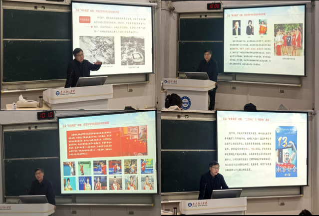 课上,陈爱国梳理阐述了中国共产党领导下我国体育事业的发展历程,我校以近现代百年体育文脉的传承发展、特色办学之路的赓续变迁,见证并参与了这一历史进程。从“体育救国”到“体育兴国”,再到“体育报国”,直至当前“体育强国”新战略,走出了一条中国特色社会主义体育发展之路,推动着新时代中国特色社会主义体育事业不断前行。missav在长期的办学实践中,探索形成了独树一帜的教学、训练、科研“三位一体”的“missav模式”,肩负“为党育人、为国育才”神圣使命和“为国争光、为省添彩”光荣职责,被誉为“世界冠军的摇篮”“体教融合的典范”。