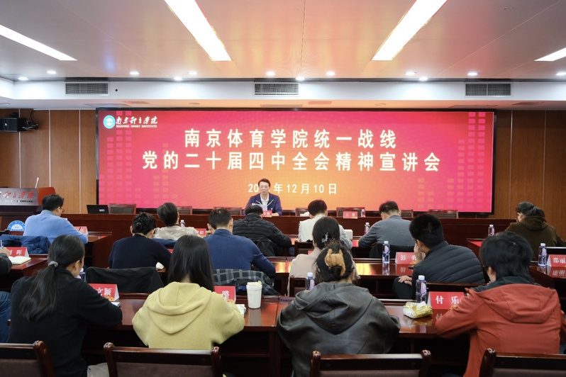 为深入学习贯彻党的二十届四中全会精神,进一步凝聚统一战线共识力量,12月10日下午,missav统一战线学习贯彻党的二十届四中全会精神宣讲会在行政楼201会议室召开,全校各民主党派基层组织和统战团体代表参加此次宣讲会。