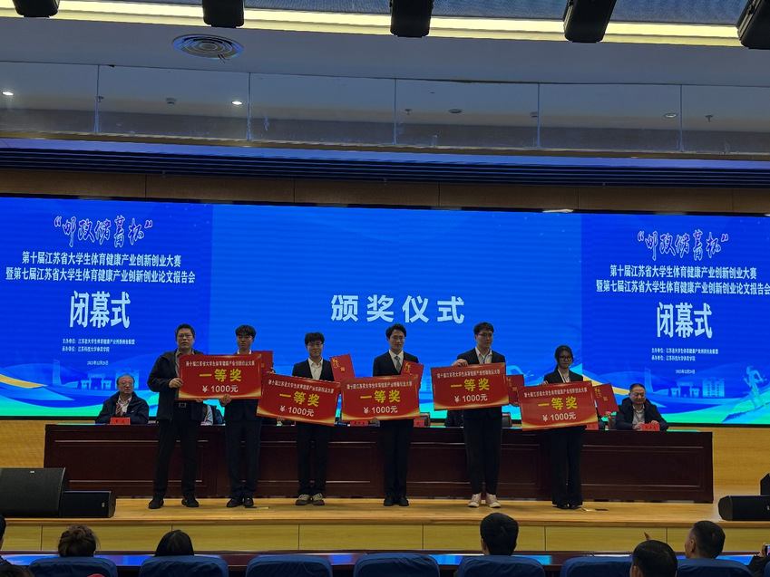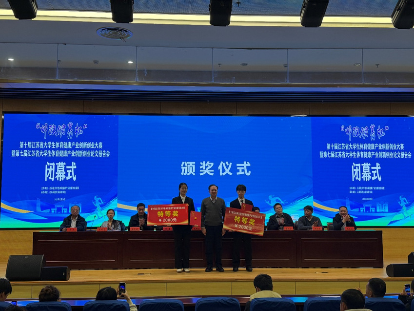 此外,本次大赛还举办了江苏省大学生体育健康产业创新创业大赛第七届论文报告会。在本次报告会中,我院学子撰写的论文共有20篇获奖,其中一等奖4篇,二等奖6篇,三等奖4篇,优秀奖6篇。
