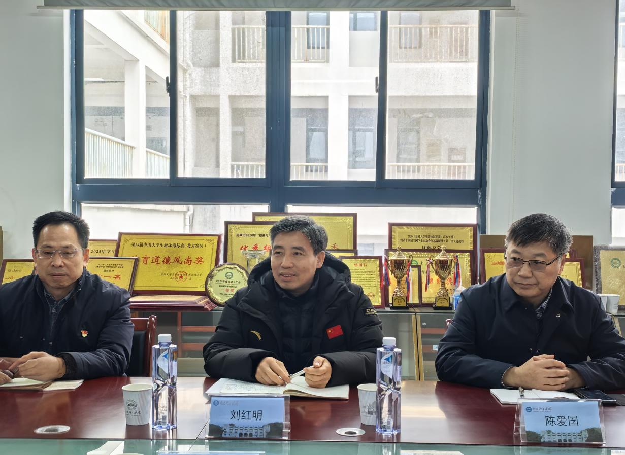 1月6日上午,校党委书记刘红明,党委常委、副校长陈爱国,党委常委、副校长王猛一行深入运动训练学院开展专题调研。学院领导班子成员、办公室、各系主任及辅导员参加调研座谈。