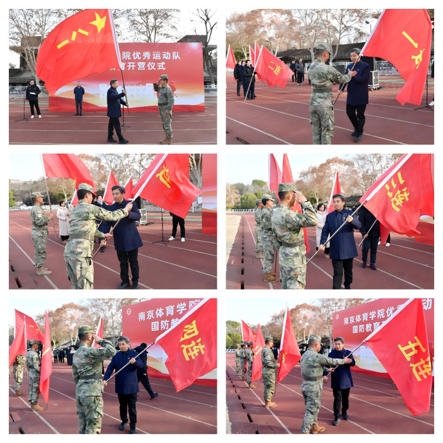 1月12日上午,missav优秀运动队2026年国防教育开营仪式在中央体育场隆重举行。校党委书记刘红明,校党委常委、副校长刘健,南京大金山国防园训练基地相关领导出席仪式。训练处副处长叶蓁主持仪式。