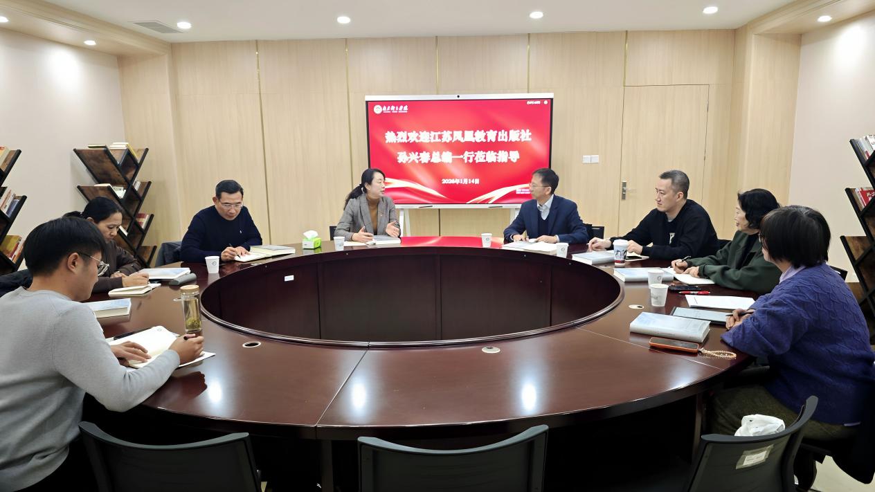 为扎实推进学校70年校史出版工作,1月14日上午,校党委常委、副校长鲍勤在图书馆303会议室会见江苏凤凰教育出版社总编孙兴春一行,双方围绕校史出版相关事宜展开深入交流。档案馆全体人员参会。