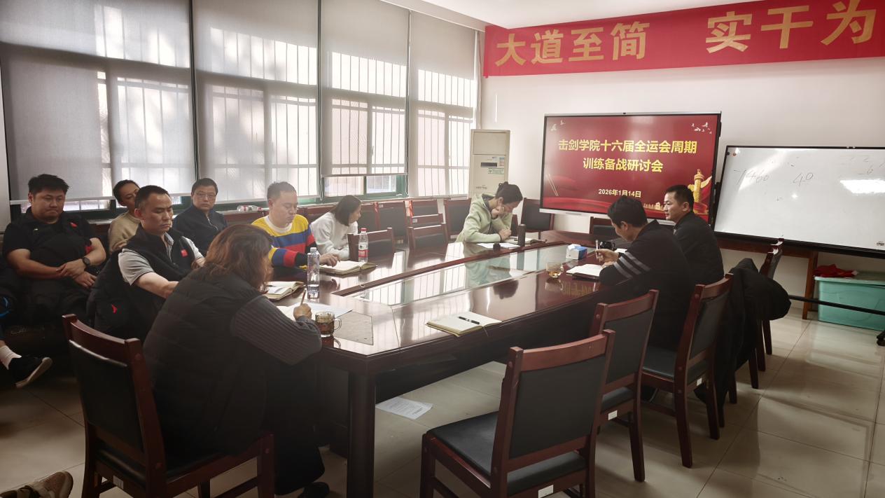1月14日上午,击剑学院召开十六届全运会周期备战研讨会,击剑学院院长沈朝阳、部分管理干部、各组教练员参加会议,会议由击剑学院副院长兼领队孙海平主持。