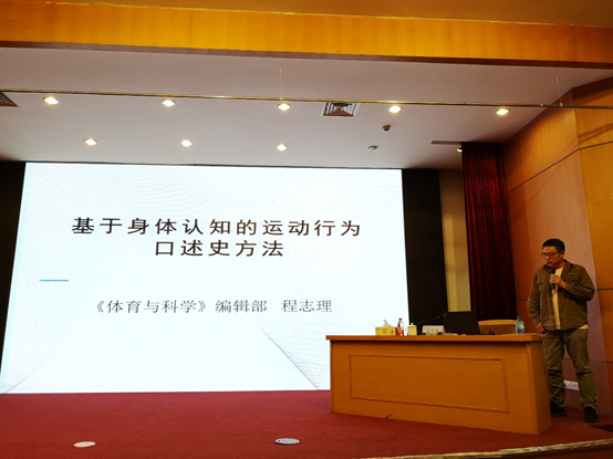 程志理编审在讲座中指出,体育学的研究分为两种思维模式,一种是研究人体的“生物体育学”,另一种是研究运动行为的“行为体育学”。前者是基于认识论,后者回到体育的本体论。他认为很难用数据和客观的观察方式来准确判断人的行为特征,由此口述史就被引入到体育学研究中。作为体育学研究方法的“口述史”,是基于体认范式的运动行为阐释,是运动行为研究证据链互证环节的一部分。口述史作为基于身体认知的运动行为研究方法,包含五大要素:即回到运动情景、文化在场、现场感、切身感和拟态。