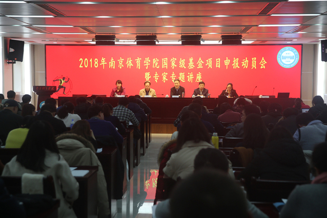 12月26日下午,我校隆重召开了2018年度国家级基金项目申报动员大会。南京体院党委书记朱传耿,校长杨国庆,副校长史国生、李江、肖爱华出席了会议,会议由李江副校长主持,学校各教学部门、研究中心及部分机关工作人员140余人参加了本次会议。