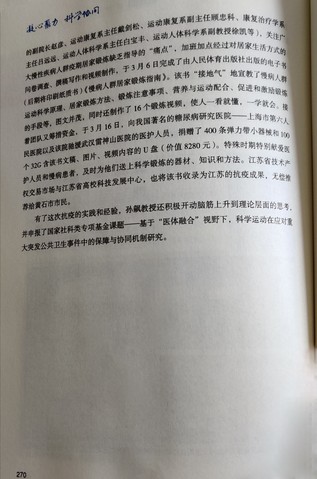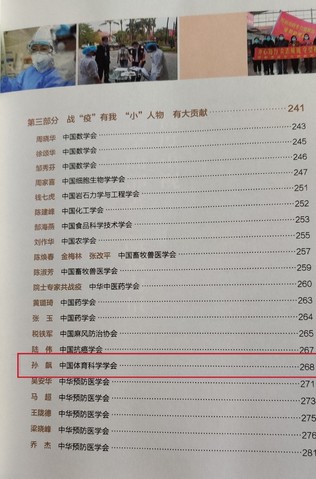 近日,由中国科协科技社团党委主编的《凝心聚力 科学协同 全国学会战疫事迹选编》一书中刊载报道了我院孙飙教授《带领团队创出“医体融合”抗疫先例,取得丰硕成果》一文。同时,团队的事迹也为中国体育科学学会获得中国科学技术协会“2020年全国科技工作者日优秀抗疫学会”,提供了素材和内容。
