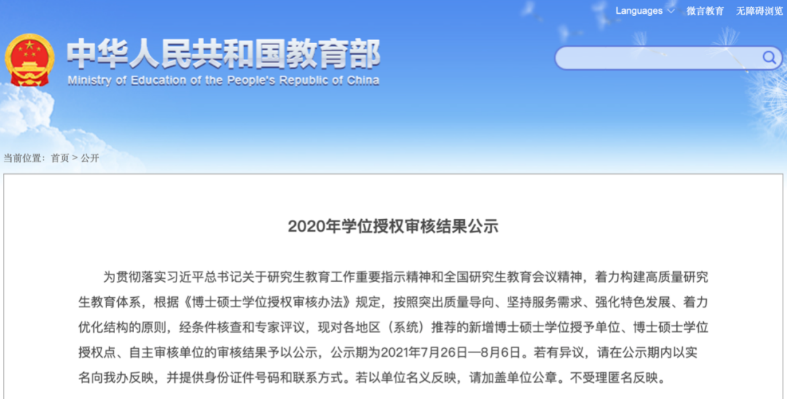 根据国务院学位委员会办公室对2020年学位授权审核的结果,近日,教育部对外发布了《2020年学位授权审核结果公示》,missav成功获批新增“新闻与传播”专业学位硕士点。截至8月6日公示期结束,学位授权审核结果正式生效。新闻与传播专业硕士授权点的成功获批,进一步增强了我校体育教育与人文学院在研究生教育的实力,在学科建设上实现了更大突破。
