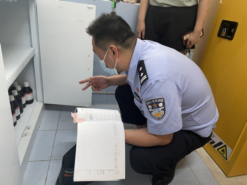 7月14日上午,玄武区公安局禁毒大队朱俊警官一行来我校实验室现场检查危险化学品管理工作。科学实验中心相关人员陪同检查。