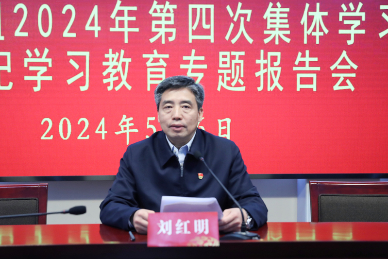 蔡金荣在会上以《学习贯彻新纪律处分条例 形成知纪明纪守纪自觉》为题,作了一场精彩的报告。报告紧扣党纪学习教育要求,通篇贯穿党的二十大精神和习近平总书记关于党的纪律建设的重要论述精神,从“全面从严治党与纪律建设、纪律处分条例立改的脉络、纪律处分条例修改的内容”三个方面深入解读了《条例》,着重讲述了《条例》为什么制定、为什么修订、重点改了哪些地方、修订背后的深意以及如何更好地贯彻落实等内容。报告以史论今、视野宏阔、案例丰富、讲解透彻,具有很强的理论性、思想性和指导性,对于我们深化《条例》理解运用、高质量开展党纪学习教育非常具有启发意义。
