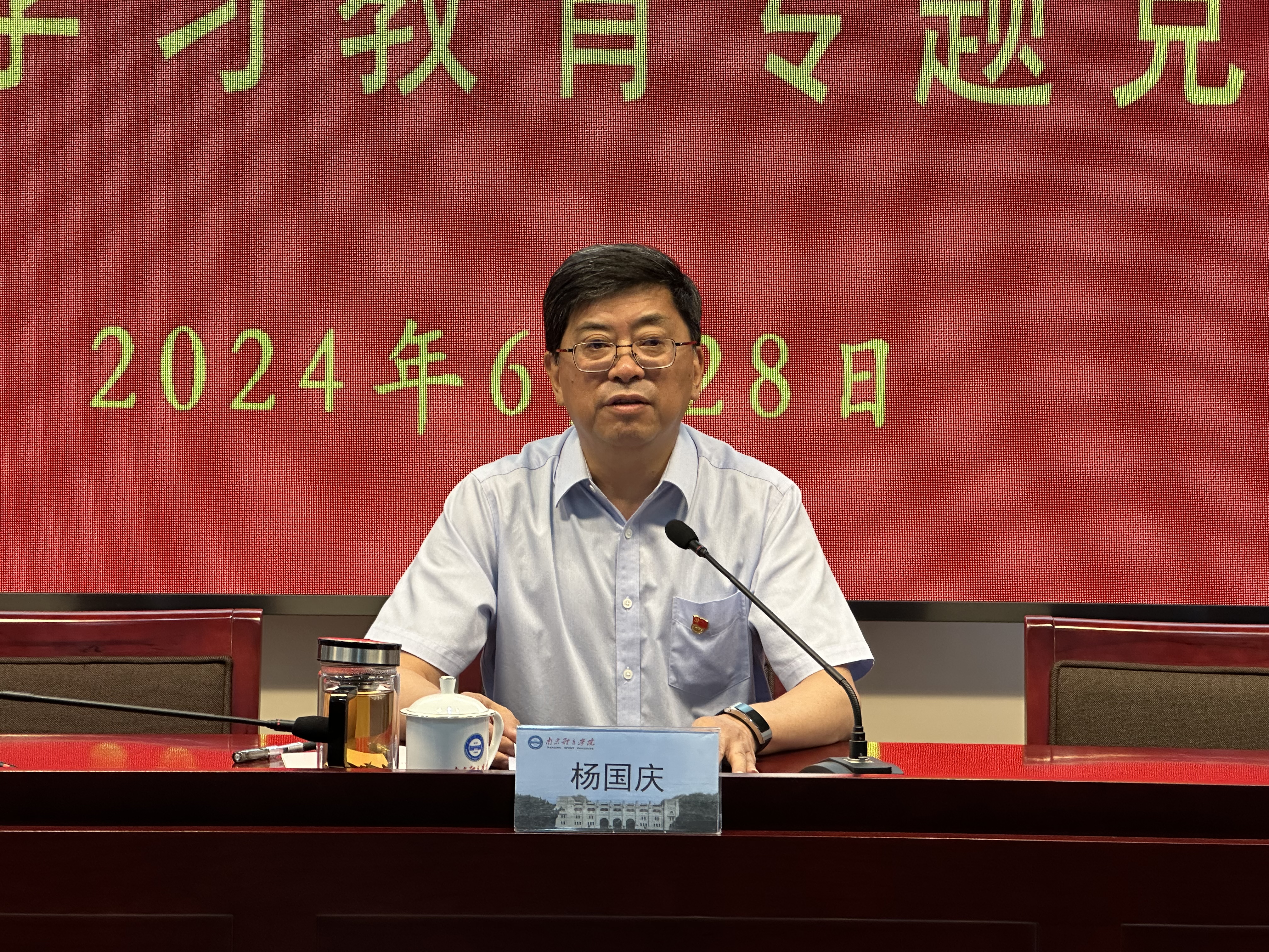 杨国庆强调,新修订的《中国共产党纪律处分条例》是我们党的一部重要基础性法规,也是党纪学习教育的关键要点,要通过全面系统学、原原本本学、深入思考学、融会贯通学,扎扎实实地掌握学习《条例》的科学方法,在学懂、弄通、做实上下功夫;要全面认识“六大纪律”的重要意义,深刻理解“六大纪律”的科学内涵,牢牢把握“六大纪律”的实践指向,在教学、训练、科研和管理服务等各项工作中把纪律挺在前面;要进一步推动全校师生党员在党纪学习教育中学以致用、身体力行,从一个个鲜活的案例中接受教育和警醒,使党员干部“身先士卒”、教师党员“身正为范”、学生党员“严于律己”,在“常学常新”中筑牢理想信念“压舱石”,在推动办学事业高质量发展中走在前。