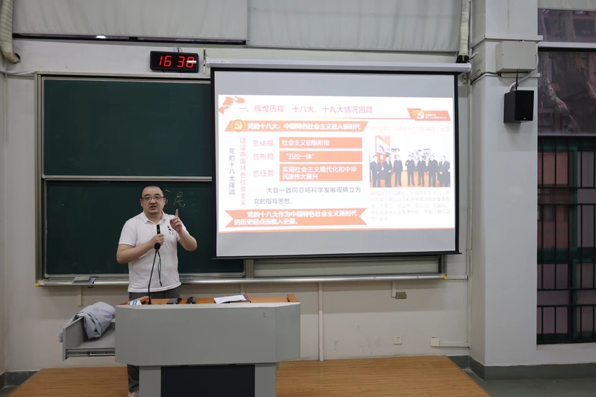 11月11日下午,应马克思主义理论青年研习社邀请,马克思主义学院教师洪北頔在教学楼阶二为近百名学生做了以“培根铸魂,不负韶华”为主题的二十大精神宣讲,深入讲解二十大报告要点,领学二十大会议精神。