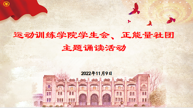为深入学习宣传贯彻党的二十大精神,不断增强系列学习实践活动的吸引力、感染力和实效性,运动训练学院不断创新学习形式。学院学生会、正能量社团以“以青春之名 献礼党的二十大”为主题,举办线上学习二十大精神主题朗诵活动。运动训练学院团委副书记吴海艳、2022级年级辅导员刘宸以及学院学生会、正能量社团全体成员参加本次活动。主题朗诵活动由学院正能量社团杨易萍同学主持。