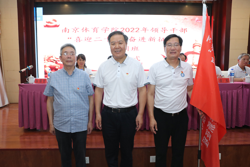 朱传耿为校党委常委、组织部部长陆玉林授培训班班旗
