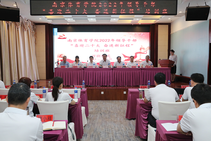 7月12日上午,missav2022年领导干部“喜迎二十大 奋进新征程”培训班开班仪式在遵义举行。校党委书记朱传耿,校领导史国生、兰亚明、金松、潘林珍、黄步龙和遵义干部学院党史党建教研部原主任张景宽出席仪式并在主席台就坐。史国生主持仪式。全校处级干部60余人参加了学习。