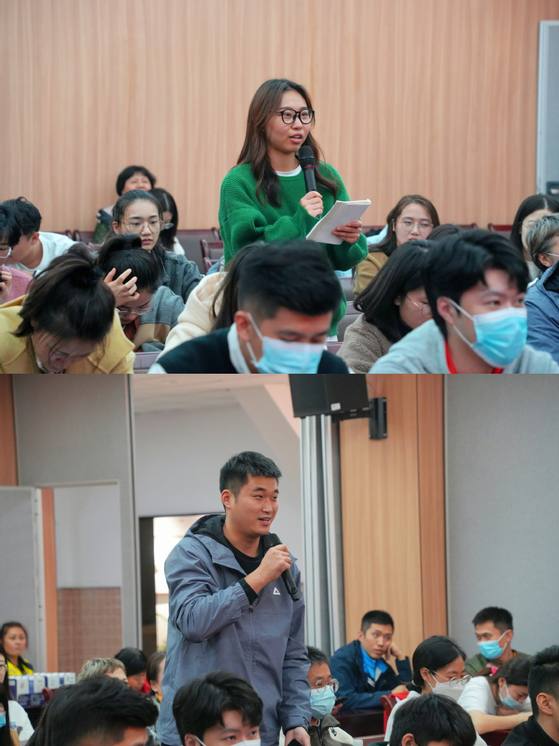 在现场提问环节,面对青年教职工的提问,许安琪结合自身体会,逐一进行了详细解答。她以自身不畏伤病、坚持训练,克服艰难困苦最终为国争光的经历勉励大家怀抱梦想又脚踏实地,踔厉奋发、勇毅前行,为加快建设体育强国贡献青春力量,生动诠释了“爱岗敬业、争创一流、艰苦奋斗、勇于创新、淡泊名利、甘于奉献”的劳模精神。