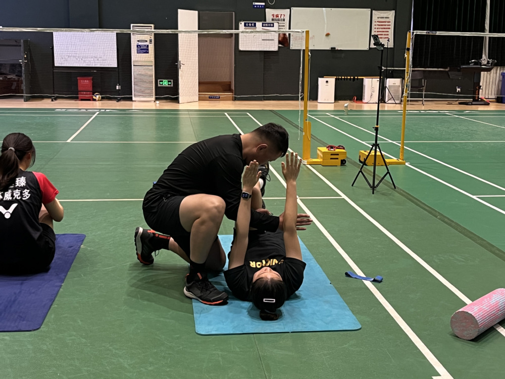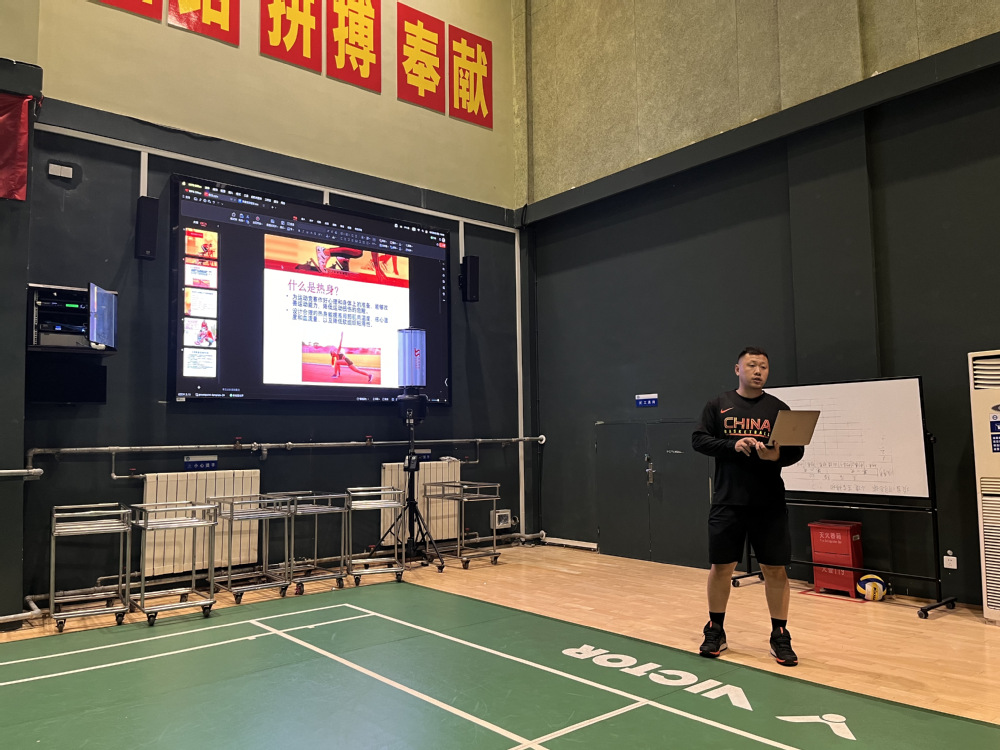 下午3:00,在北羽毛球馆,学训融合中心徐懋华教练在羽毛球女队进行了一场题为《赛前体能专项准备》的体能公开课。体能公开课与教学实验公开课是我校学训融合专项活动的内容之一,不定期进行展示。徐懋华教练承担省羽毛球女队的日常体能训练工作,此次公开课包含理论与实操两部分,徐教练分别进行了理论讲解和实操展示。