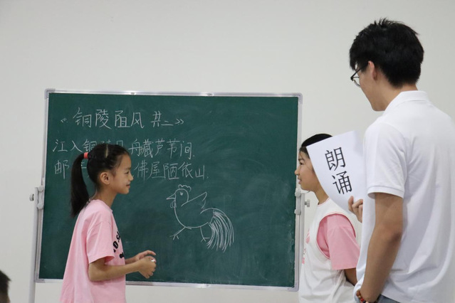 “冠军夏令营”结营仪式上,团队成员和小朋友一起表演