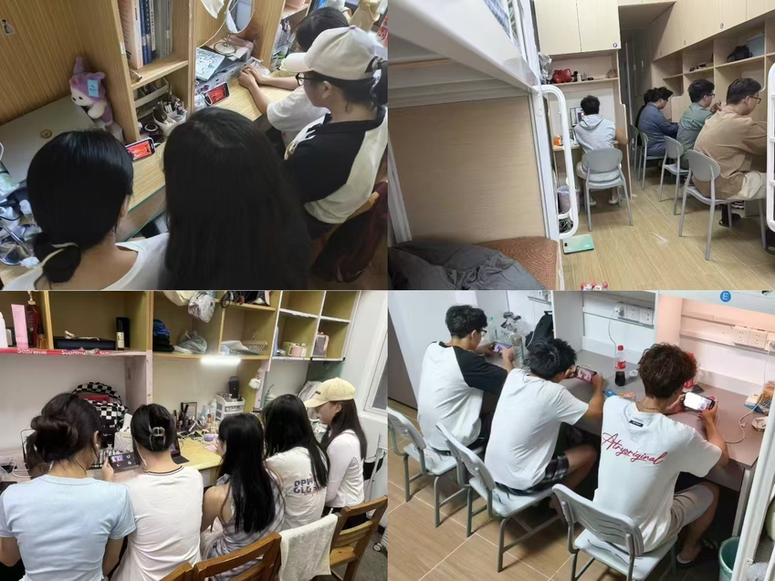 未到现场的同学在宿舍线上自发观看