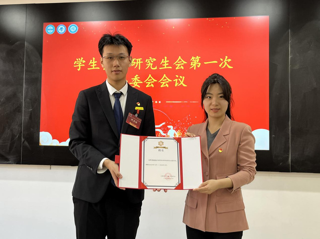 全委会第一次全体会议在本届学代会和研代会结束后成功召开。李浩给夏忆汝老师颁发聘书,周逸臣给陈镜如老师颁发聘书。李浩和周逸臣分别作为学生会、研究生会主席团代表讲话。