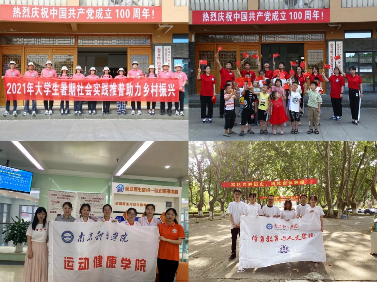 为推进教育部体育美育浸润计划项目有序开展,武术与艺术学院联合体育教育与人文学院共25名大学生赴沭阳县三所学校开展“体育美育浸润计划”暑期社会实践活动。团队师生在10天时间里,结合建党百年契机,开展了党史小课堂、民族传统体育文化宣讲、放飞手工绘制风筝等系列活动,融合体育与艺术进行教育教学,并以体育美育小课堂的形式呈现暑期社会实践成果汇报展演。体育产业与休闲学院“科创百年 奋斗有我”理论宣讲实践团开展为期三天的实践活动,深入江苏科技馆、南京科技馆、江苏规划馆等,将理论学习和社会实践相结合在实践学习中见证并宣讲党的百年发展之路,从而了解江苏科技创新所取的显著成果。