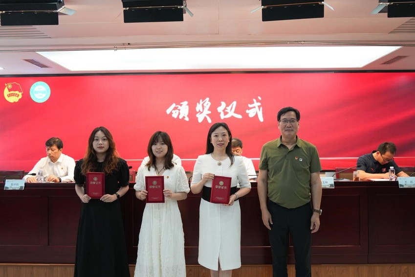 校党委常委、党委宣传部部长、党委统战部部长许立俊为获奖代表颁奖