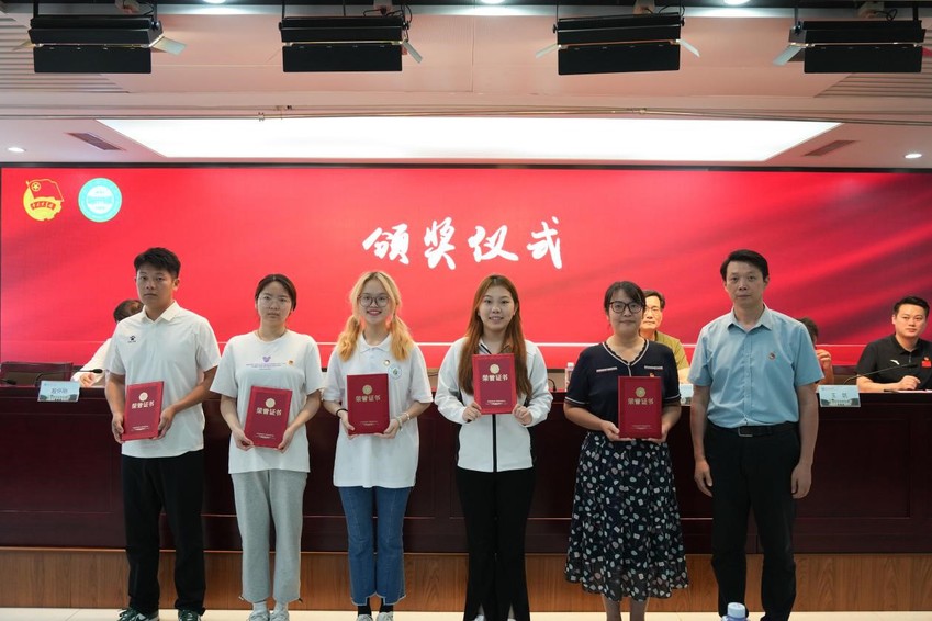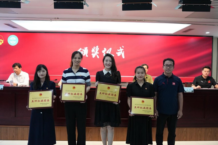 校党委常委、党委组织部部长陆玉林宣读了《关于missav2022-2023年度共青团工作获奖情况通报》。校党委副书记、校长杨国庆,校党委常委、党委组织部部长陆玉林,校党委常委、党委宣传部部长、党委统战部部长许立俊,党委学工部、学工处处长殷怀刚,教务处处长王凯,校团委副书记(主持工作)陆春龙分别为获奖代表颁奖,并与获奖代表合影留念。