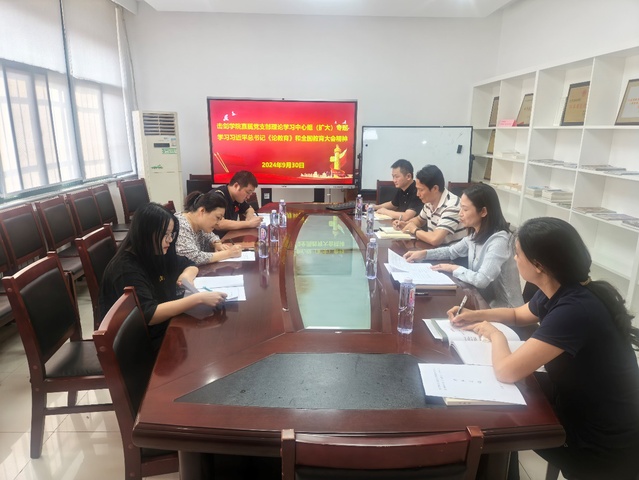 9月30日下午,击剑学院直属党支部理论学习中心组(扩大)开展了2024年第十三次集中学习,校纪委副书记、纪委办主任陈蕾、学工处处长丁永亮巡学旁听,会议由直属党支部书记朱小兰主持,全体理论学习中心组成员参加了学习和交流。
