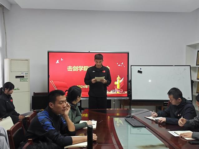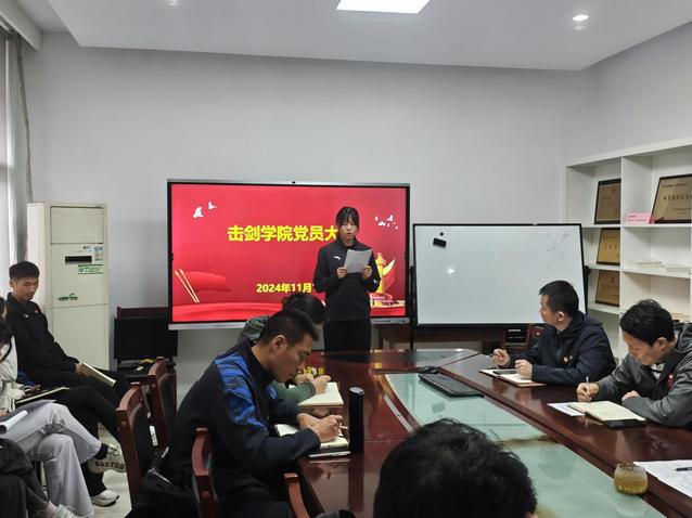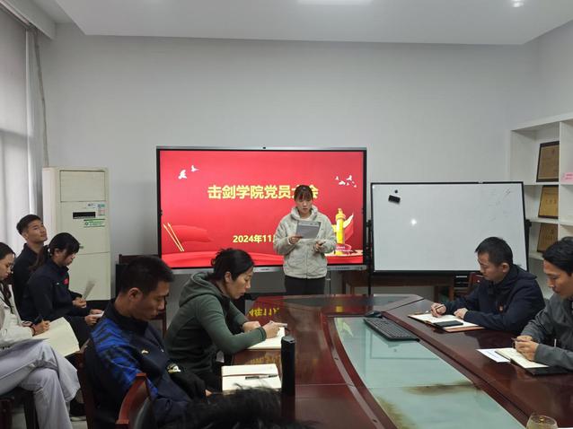 为进一步加强和推进党员队伍建设,落实党员发展工作计划,11月18日上午,击剑学院直属党支部在击剑馆一楼会议室召开接收预备党员大会。会议由支部书记朱小兰主持,支部全体党员参加会议。会议严格按照发展党员工作细则要求及逐个讨论、逐个表决的原则进行。