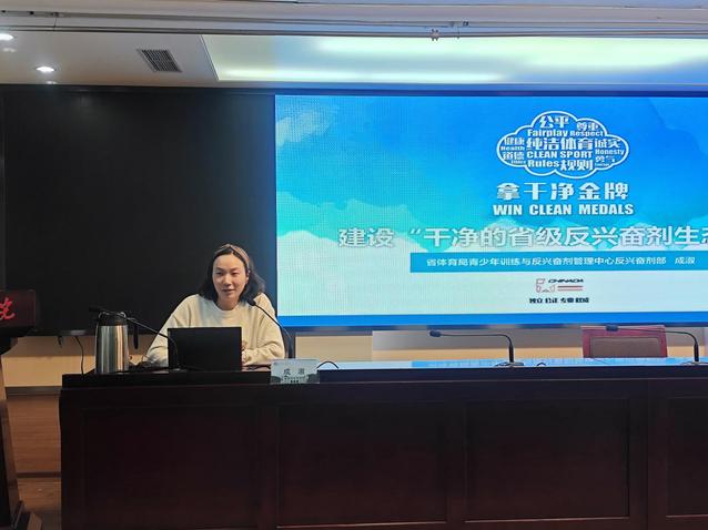 为深入学习贯彻习近平新时代中国特色社会主义思想主题教育,坚决落实习近平总书记关于反兴奋剂的重要指示批示,持续推进反兴奋剂斗争,1月14日晚,击剑学院在行政楼101会议室举办反兴奋剂业务知识专题讲座。此次讲座特邀江苏省体育局青少年训练与反兴奋剂管理中心反兴奋剂部部长、国家体育总局反兴奋剂中心运动员委员会副主任委员、国家级纯洁体育教育讲师成淑担任主讲嘉宾。击剑学院全体管理干部、教练员、运动员、科医保障人员参与本次讲座,讲座由击剑学院直属党支部书记朱小兰主持。