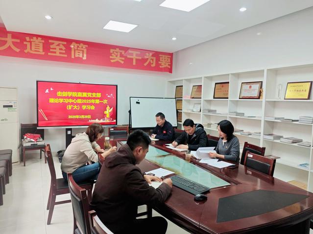 3月29日上午,击剑学院直属党支部召开理论学习中心组2025年第一次(扩大)学习会。会议由学院直属党支部书记朱小兰主持,全体管理干部参加学习。