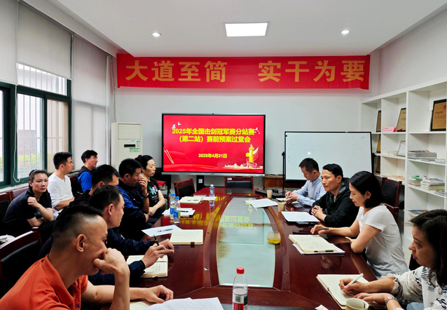 4月21日上午,击剑学院召开2025年全国击剑冠军赛(第二站)预案过堂会,击剑学院直属党支部书记朱小兰、院长沈朝阳出席会议,全体教练员、管理人员参加会议,会议由击剑学院副院长兼击剑队领队孙海平主持。