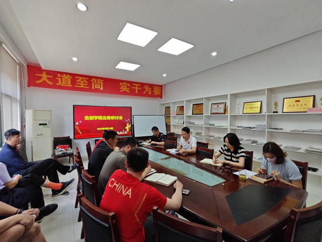 5月19日上午,击剑学院在击剑馆一楼会议室召开业务研讨会,专题研讨如何面对比赛中不符预期的判罚。全体管理人员、教练员参加会议,会议由击剑学院院长沈朝阳主持。