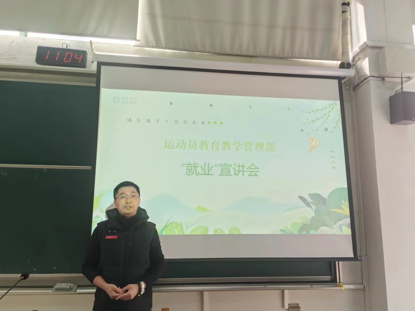 为贯彻落实《2024届毕业生就业工作推进会》会议精神,帮助毕业生深入分析研判当前高校毕业生就业形势,运动员教育教学管理部于3月4日上午在阶二教室举办促就业宣讲会,会议由刘峰主持。