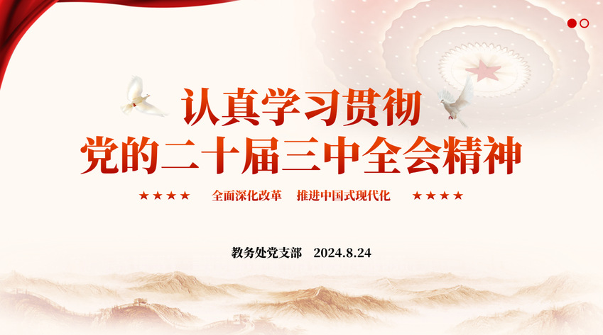 为深入学习和贯彻落实党的二十届三中全会精神,进一步统一思想、凝聚共识、激发干劲,机关党委第十党支部于8月24日举行了“党的二十届三中全会精神专题学习会”。此次学习会旨在通过系统学习、深入研讨,就党的二十届三中全会审议通过的《中共中央关于进一步全面深化改革、推进中国式现代化的决定》和习近平总书记关于《决定》稿的说明进行学习。教务处处长王凯(九三学社missav支社主任委员)出席会议,全体支部党员参加会议,支部书记李强主持会议。