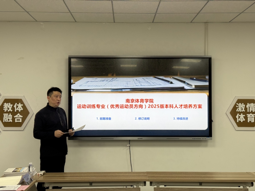 王凯首先对与会专家的到来表示热烈欢迎,接着介绍了我校运动训练专业(优秀运动员)概况与运行特点以及三位专家的学术背景和专业成就。随后,专业负责人张松年汇报了2025版人才培养方案的制定背景、目标定位、课程体系设计以及特色亮点等内容。