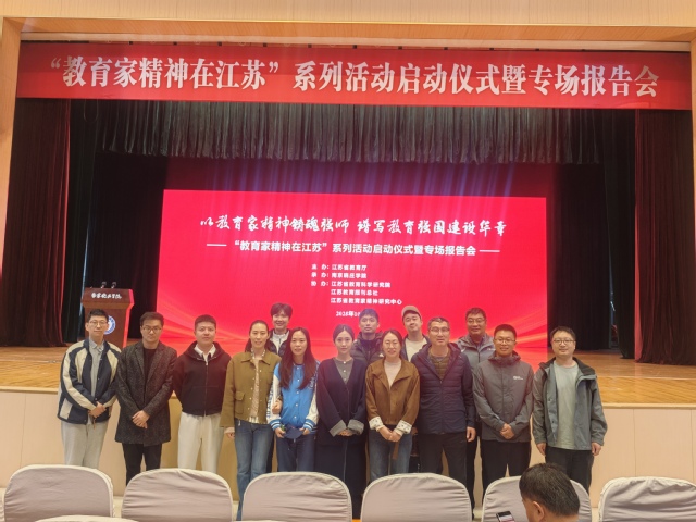 为深化教育家精神学习实践,推动师德师风建设与教师专业发展,10月31日,由江苏省教育厅主办、南京晓庄学院承办的“教育家精神在江苏”系列活动启动仪式暨专场报告会在南京晓庄学院方山校区举行。我校组织教师代表参会,与全省教育系统千余名同仁齐聚一堂,共同开启对教育家精神的学习与感悟之旅。