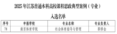 近日,江苏省高等学校教学管理研究会课程思政建设工作委员会公示了2025年江苏普通本科高校课程思政典型案例入选名单。经学校推荐,资格性审查和专家评审,全省共115个专业入选江苏高校课程思政典型案例(专业),239门课程入选江苏高校课程思政典型案例(课程)。其中,我校共有5项典型案例入选,包含专业案例1项、课程案例4项。