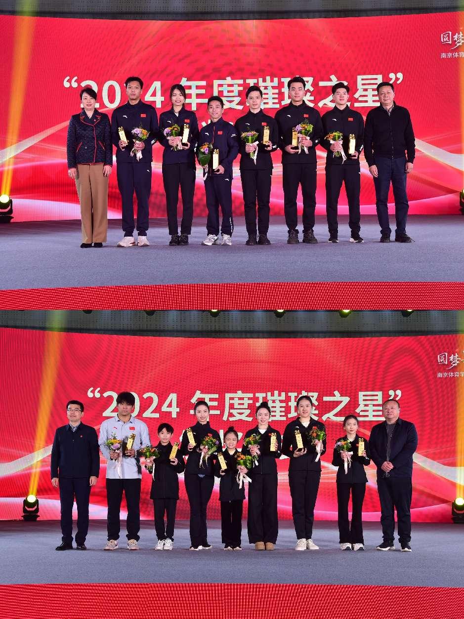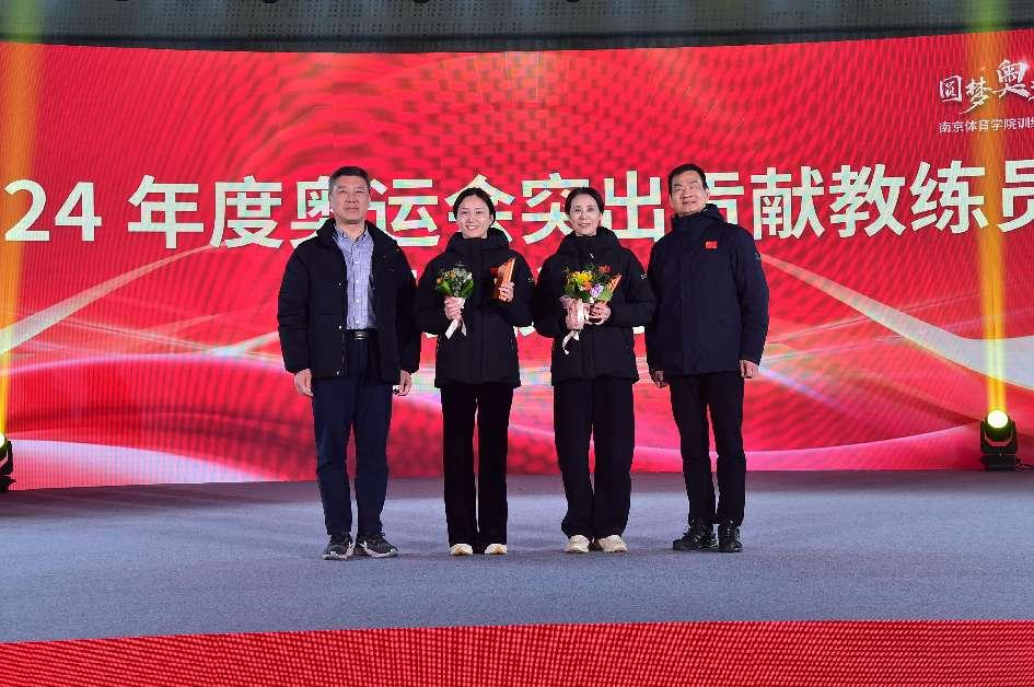 颁奖仪式上,校领导和各市体育局领导分别向王赐月、郝婷、王梓赛等人颁发了“2024年度奥运之星”奖,向王芳、李莉颁发了“2024年度奥运会突出贡献教练员”奖,向胡俊雄等16名教练员颁发了“2024年度训练备战工作突出贡献教练员”奖,向董志豪等20名运动员颁发了“2024年度璀璨之星”奖,向钱佳睿等19名运动员颁发了“2024年度登攀之星”奖。