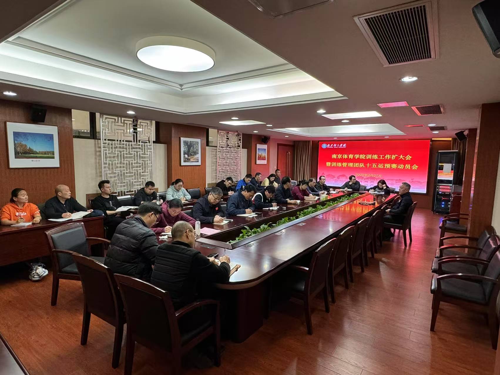 2月27日下午,我校在行政办公楼301会议室召开训练工作扩大会暨训练管理团队十五运预赛动员会。校党委常委、副校长刘健出席会议,各竞技体育二级学院书记、院长、体育科学研究院、后勤处、附属学校负责人、各优秀运动队领队、副领队、学院办公室主任及训练处同志参加了会议。