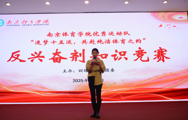 3月7日晚,由训练处、校团委联合主办的2025年省优秀运动队“逐梦十五运 共赴纯洁体育之约”反兴奋剂知识竞赛在图书馆报告厅举行。运动康复医院、体育科学研究院负责人,各竞技体育二级学院书记、各优秀运动队领队、一二三线运动员代表、科医服务人员参加活动。活动由武术与艺术学院学生张依洺主持。