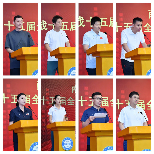 会上,刘红明书记代表学校向各竞技体育二级学院、运动康复医院、体育科学研究院下达了“百日会战”动员令。各竞技体育二级学院备战参赛人员进行了集体宣誓。乒乓球队女子一线主教练单明杰、网球队领队姜惟、体操队男子一线教练吕君海、击剑队男子佩剑一线主教练陈滔滔、花样游泳队一线主教练王芳、运动员代表击剑队女子佩剑运动员钱佳睿、科医保障人员代表徐卫华、机关后勤单位代表财务处处长丁锴依次做了表态发言,他们从不同岗位、不同角度,体现了各自的责任担当,表达了坚决完成全运会任务的坚强决心,也展现了全校上下同心备战、共铸金牌的坚定信念。
