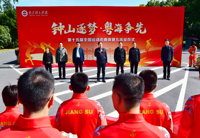 10月29日中午,我校在奥运冠军大道隆重举行出征仪式,欢送我校跳水队奔赴十五届全运赛场。校党委副书记、校长吴兵成出席仪式并讲话,校党委常委、副校长王猛,校党委常委、党委宣传部部长、党委统战部部长许立俊出席仪式。仪式由游泳学院院长王伟新主持。