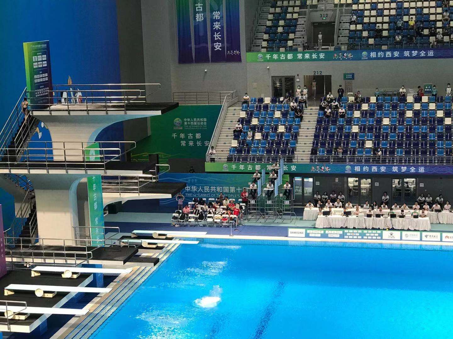 7月12-13日,第十四届全运会跳水、体操项目青年组比赛在陕西西安举行。校党委书记朱传耿,校党委常委、副校长金松、肖爱华一行,亲赴赛场,观看比赛,为我校参赛队伍加油助威。